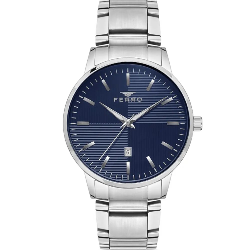 Ferro F11156A-A3 Metal Band Men Watch. The case is made out of silver super metal with a silver bezel, which stands for the high quality of the item, it has a blue color dial. This model has got 30 meters of water resistance. it can be worn in scenarios where it is likely to be splashed but not immersed in water and will be fine in rain. The watch is shipped with an original box and a guarantee from the manufacturer.