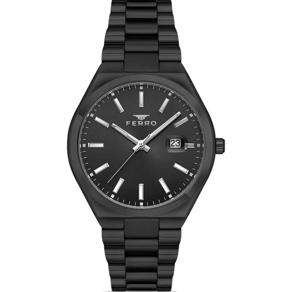 Ferro F11386A-D6 Metal Band Men Watch. The case is made out of black super metal with a black bezel, which stands for the high quality of the item, it has a black color dial. This model has got 30 meters of water resistance. it can be worn in scenarios where it is likely to be splashed but not immersed in water and will be fine in rain. The watch is shipped with an original box and a guarantee from the manufacturer.