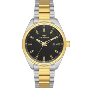 Ferro F40092A-E Metal Band Men Watch. The case is made out of silver super metal with a rose gold bezel, which stands for the high quality of the item, it has a black color dial. This model has got 30 meters of water resistance. it can be worn in scenarios where it is likely to be splashed but not immersed in water and will be fine in rain. The watch is shipped with an original box and a guarantee from the manufacturer.