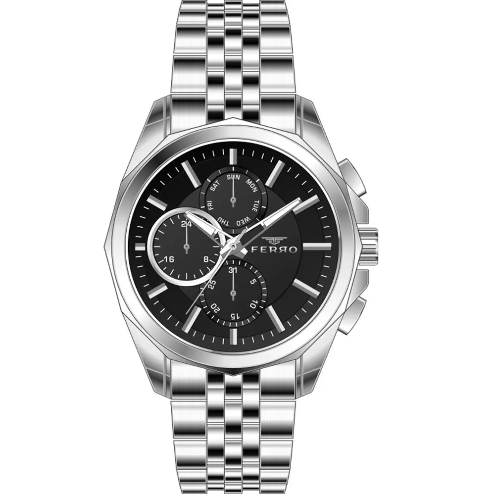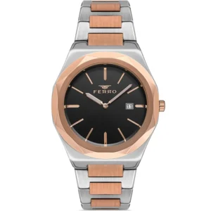 Ferro FM11391A-A2 Metal Band Men Watch. The case is made out of silver super metal with a silver bezel, which stands for the high quality of the item, it has a black color dial. This model has got 30 meters of water resistance. it can be worn in scenarios where it is likely to be splashed but not immersed in water and will be fine in rain. The watch is shipped with an original box and a guarantee from the manufacturer.