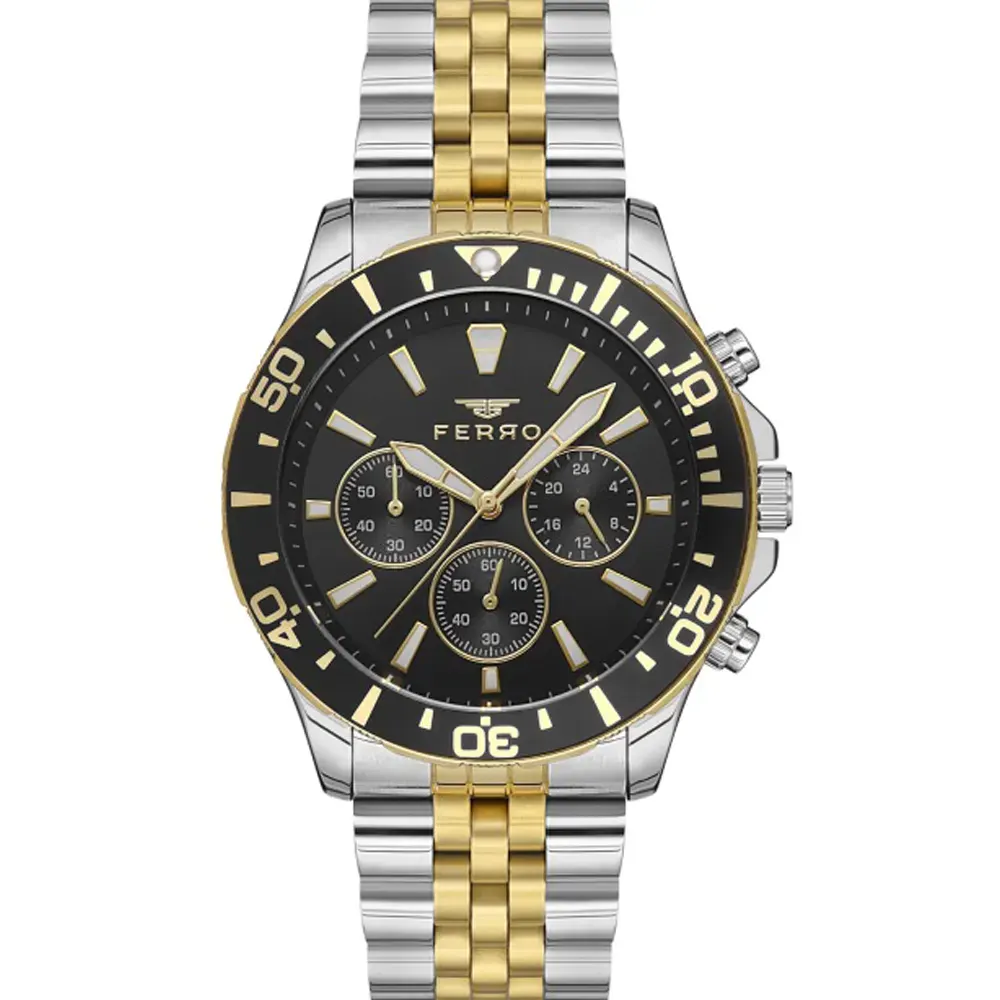 Ferro FM11921A-D2 Metal Band Men Watch . The case is made out of silver super metal with a black bezel, which stands for the high quality of the item, it has a black color dial. This model has got 30 meters of water resistance. it can be worn in scenarios where it is likely to be splashed but not immersed in water and will be fine in rain. The watch is shipped with an original box and a guarantee from the manufacturer.