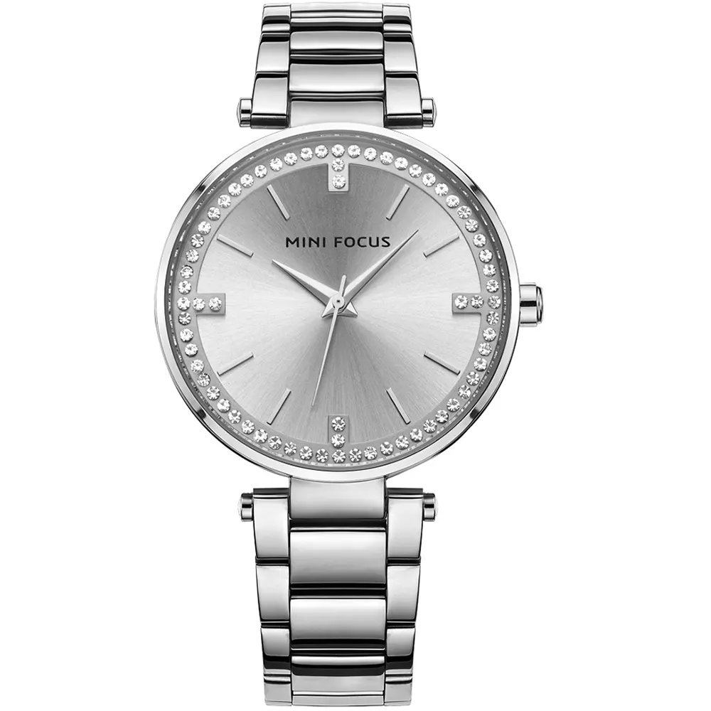 Mini Focus MF0031L-03 Metal Band Women Watch. The case is made out of silver alloy with a silver bezel, which stands for the high quality of the item, it has a white color dial. This model has got 30 meters of water resistance. it can be worn in scenarios where it is likely to be splashed but not immersed in water and will be fine in rain. The watch is shipped with an original box and a guarantee from the manufacturer.