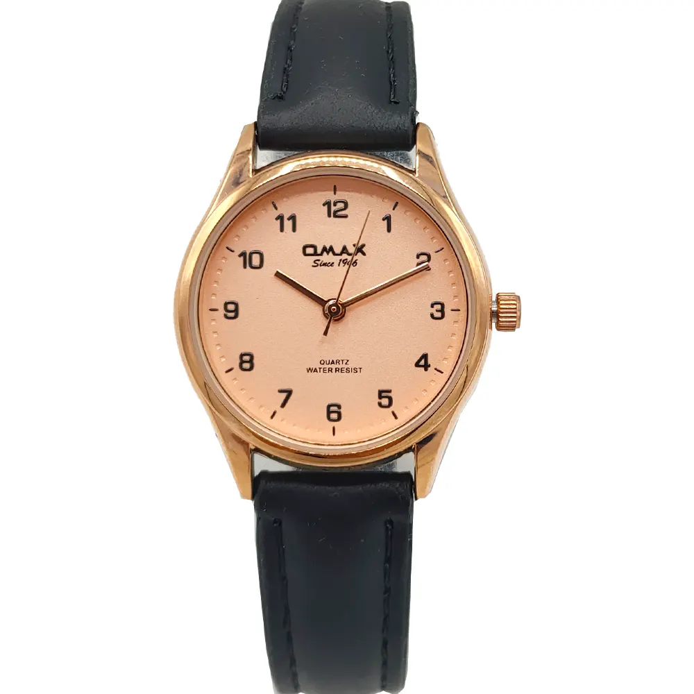 Omax PR00266B1F Leather Band Women Watch. The case is made out of rose gold alloy with a rose gold bezel, which stands for the high quality of the item, it has a rose gold color dial. This model has got 50 meters of water resistance. it can be worn in scenarios where it is likely to be splashed but not immersed in water and will be fine in rain.