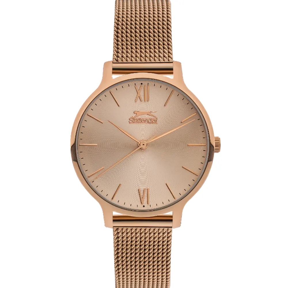 Slazenger SL.9.1823.2.02 Metal Band Women Watch. The case is made out of rose gold brass with a rose gold bezel, which stands for the high quality of the item, it has a rose gold color dial. This model has got 30 meters of water resistance. it can be worn in scenarios where it is likely to be splashed but not immersed in water and will be fine in rain. The watch is shipped with an original box and a guarantee from the manufacturer.