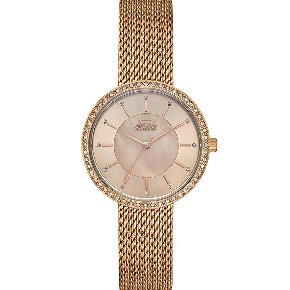 Slazenger SL.9.2049.3.04 Metal Band Women Watch. The case is made out of rose gold brass with a rose gold bezel, which stands for the high quality of the item, it has a rose gold color dial. This model has got 30 meters of water resistance. it can be worn in scenarios where it is likely to be splashed but not immersed in water and will be fine in rain. The watch is shipped with an original box and a guarantee from the manufacturer.